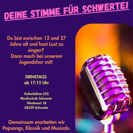 Jeden Dienstag probt der Jugendchor der Musikschule. Wer zwischen 12 und 27 Jahre alt ist und Lust hat zu singen, darf gerne einfach vorbeischauen.